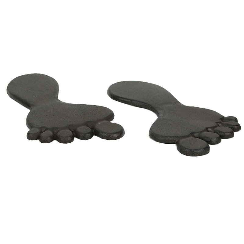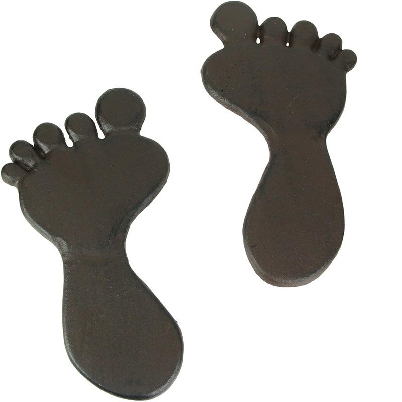 This cool pair of stepping stones is designed to add a unique and delightful look to your garden path. Made from cast iron, each of the footprints is 34cm long, 18cm wide. They have an antique brown enamel finish that gives them a rustic, aged look. You get a left foot and a right foot. They make a great housewarming gift, and are perfect for new landscaping projects.