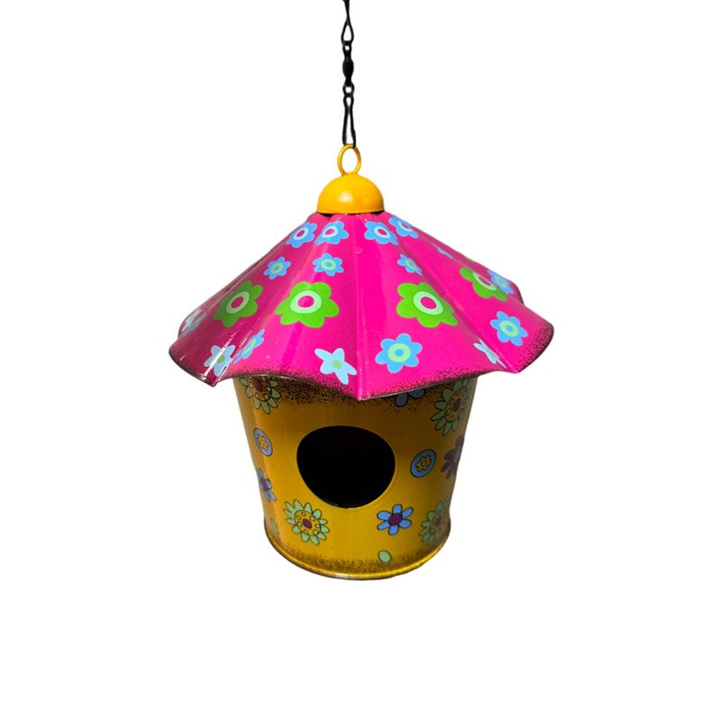 Give a bird a home of a lifetime with this colorful birdhouse. Bright and cheerful this flower covered house will be the highlight of your yard or garden. Makes a wonderful patio decoration.
