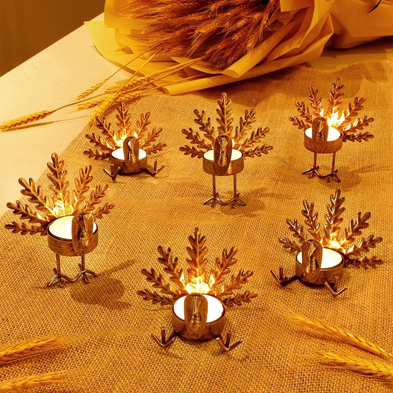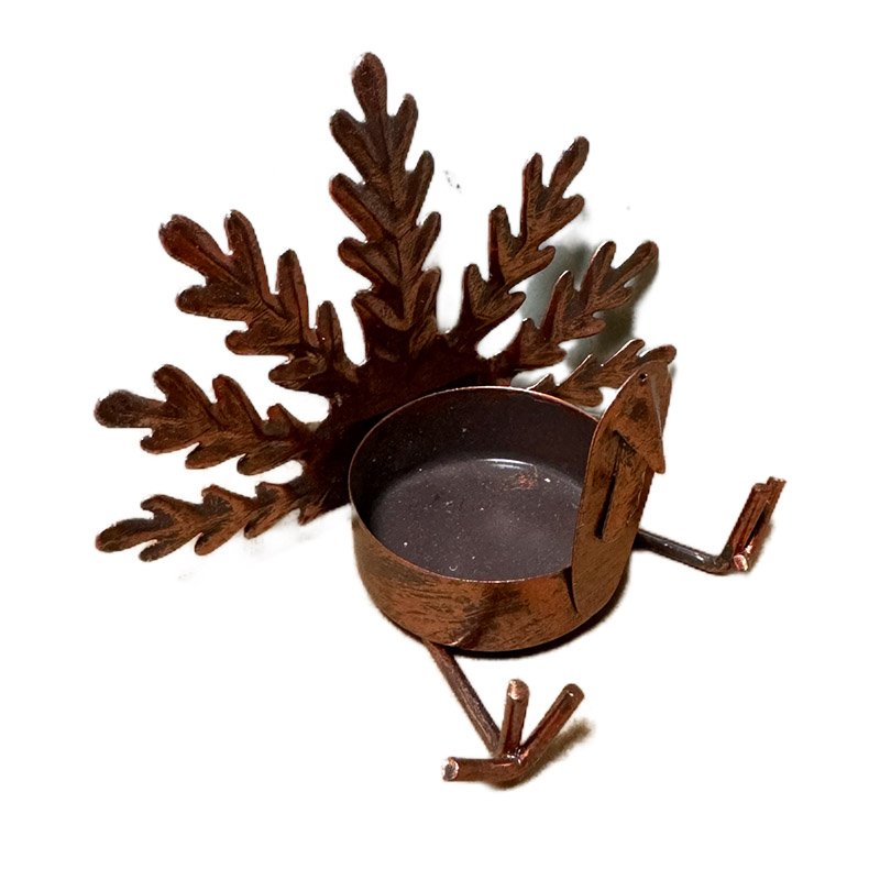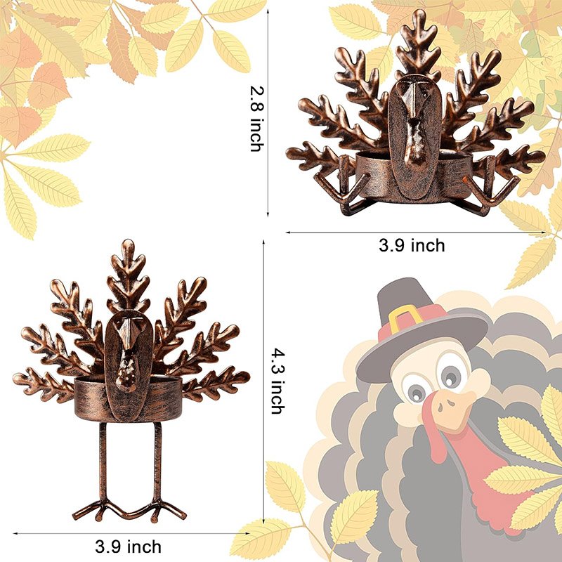 - Metal turkey tealight candle holders are made of metal with a red copper finish, heavy enough for holding their belongings, best candle centerpieces for tables.Festive, classy and the perfect accent for your table decor, create an adorable holiday display with set of 6 turkey tea light holders, nice Thanksgiving gifts for all your friends.