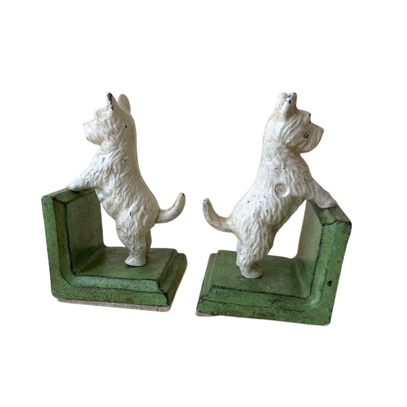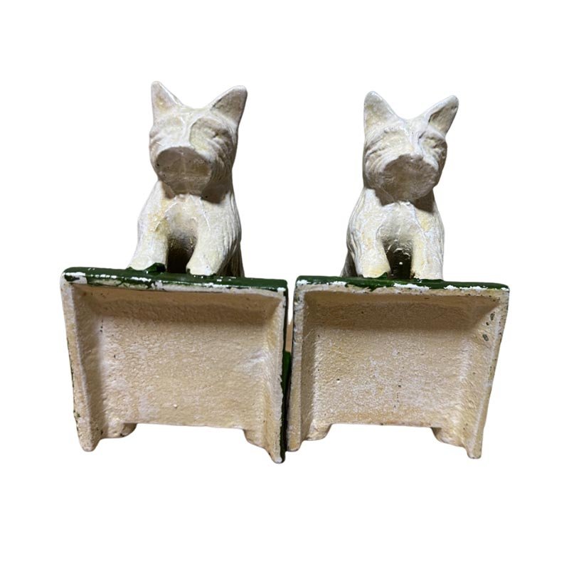 Painted cast iron bookends and door stop aged appearance
